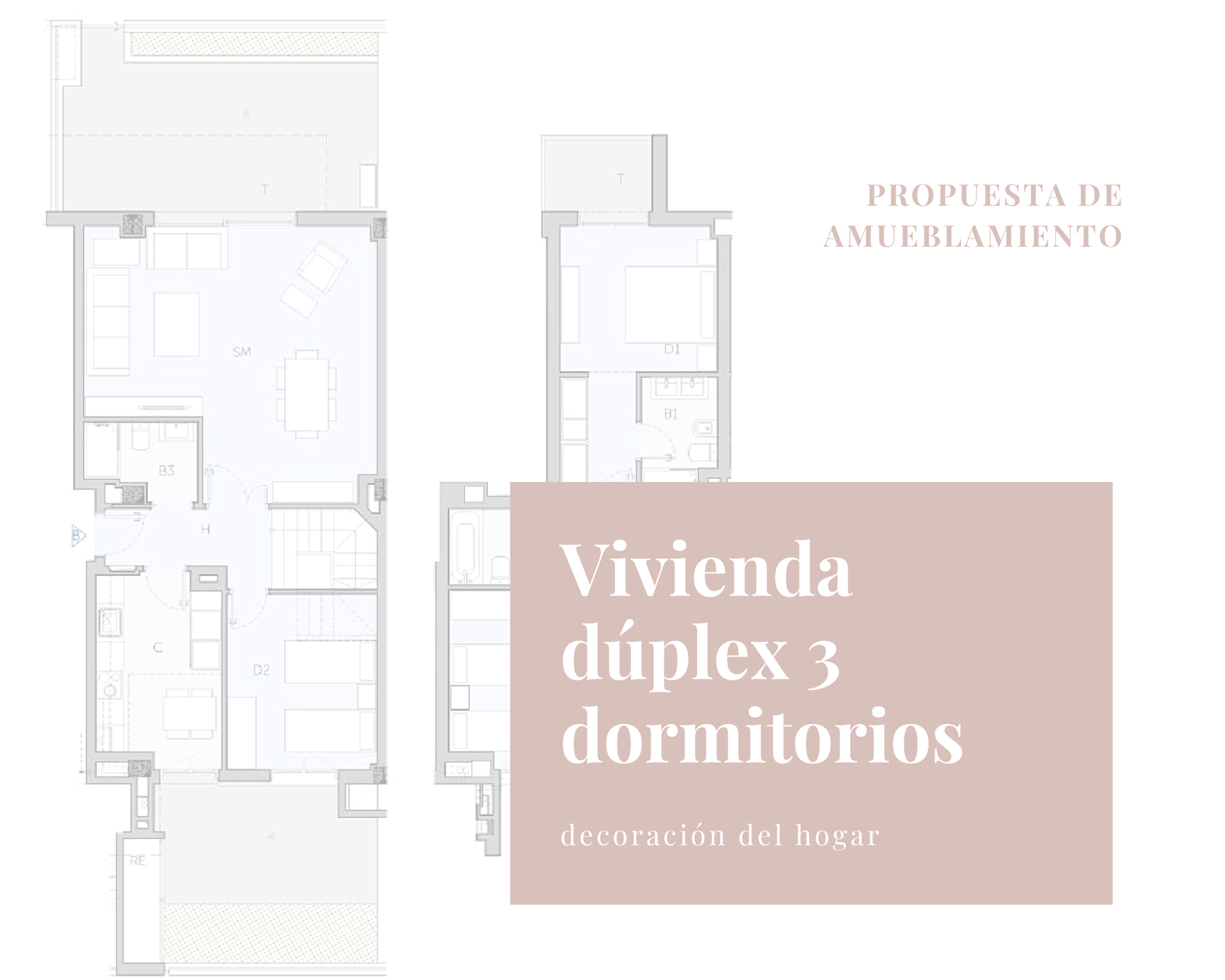 Propuesta de amueblamiento de vivienda dúplex de 3 dormitorios. Piso piloto para promoción Metrovacesa.